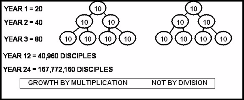 Let us play a numbers game and see the potential of growth with these small groups. For illustration will use two groups of 10 meeting in homes or meeting places. Let's take these 20 people. This is just a small amount when one looks at all that confess Jesus (Yeshua) as Lord and Savior. But let's say that these 20 people go out and find one person each that is willing to be a disciple. These 20 spend time helping these new disciples grow. The next year there would be 40 ready to go out to find one to disciple. Year 3 there would be 80, and so on. In just 12 years there would be 40,960 disciples. In 24 years there would be 167,772,160 disciples. All of these just from 20 committed people today willing to obey Jesus. If all Disciples today would do the same the Gospel would be preached to every person in the world in our lifetime.